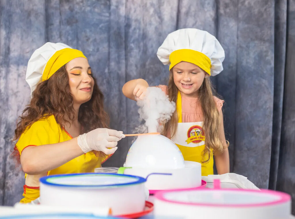 Шоу-майстер-клас, де кожен перетвориться на кухаря/кондитера, отримає свій фірмовий одяг, усе необхідне приладдя та ОСОБИСТИЙ сяючий столик для приготування стильних мильних страв. Ваші дітки залишаться в захваті від Мильної Кухні!