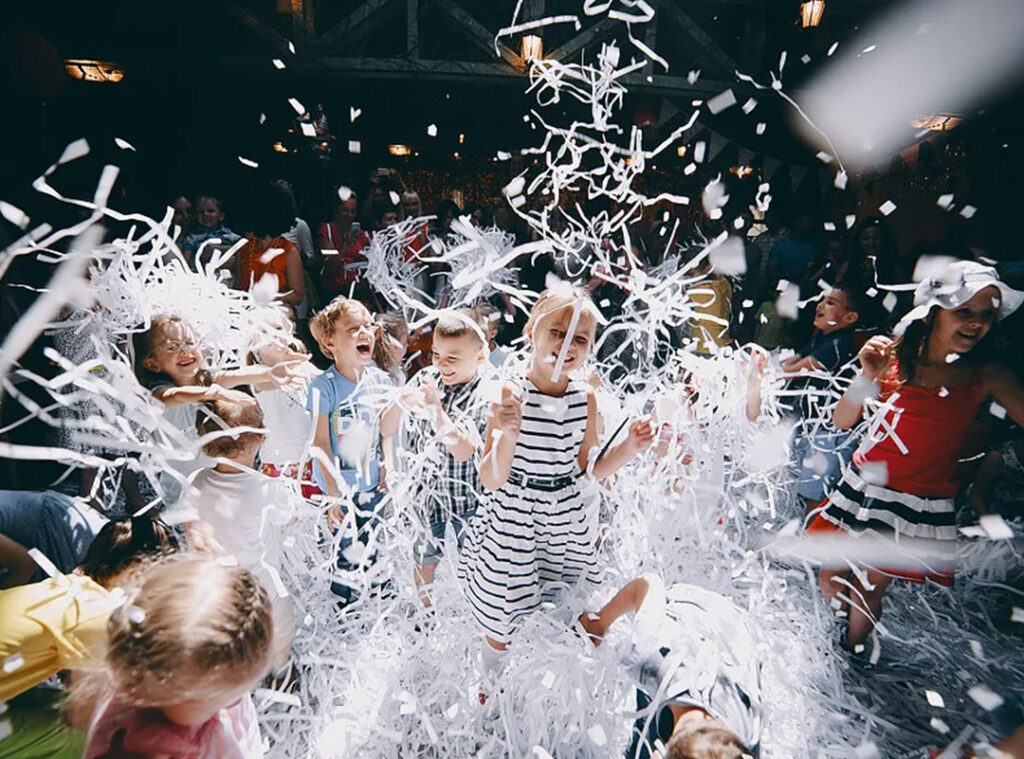 Уявіть, що в повітрі кружляють тисячі крихітних паперових стрічок, конфетті та сніжинок – так починається свято з чистого аркуша, а точніше зі 100 кг чистих аркушів шовковистої білої, сріблястої або яскравого кольорового паперу!